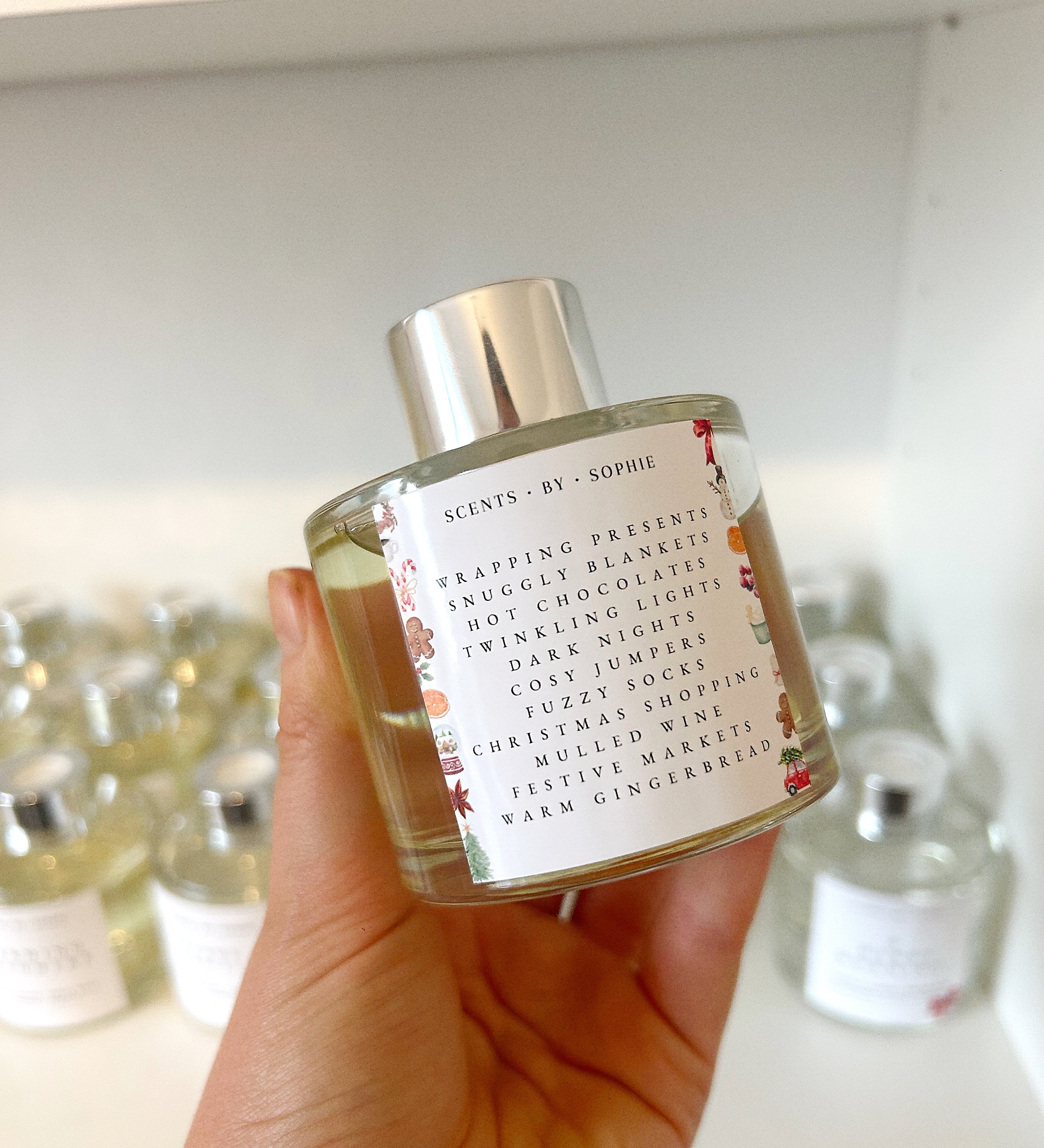 100ml Clear diffusers with a silver cap and five black or light grey fibre reeds.