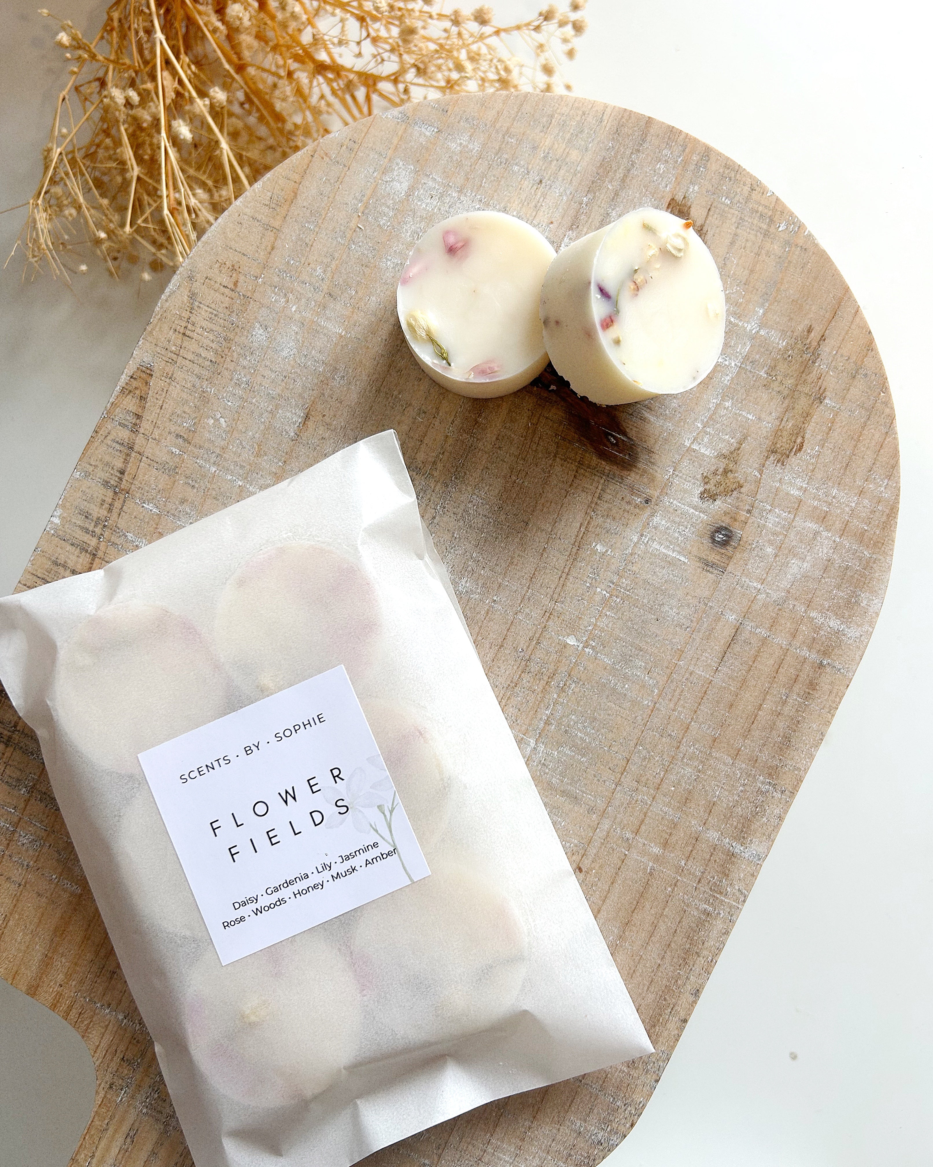 A soft floral blend of daisy, gardenia, lily, and jasmine, balanced with rose and gentle woods. Finished with warm notes of honey, musk, and amber for a sweet, comforting base.