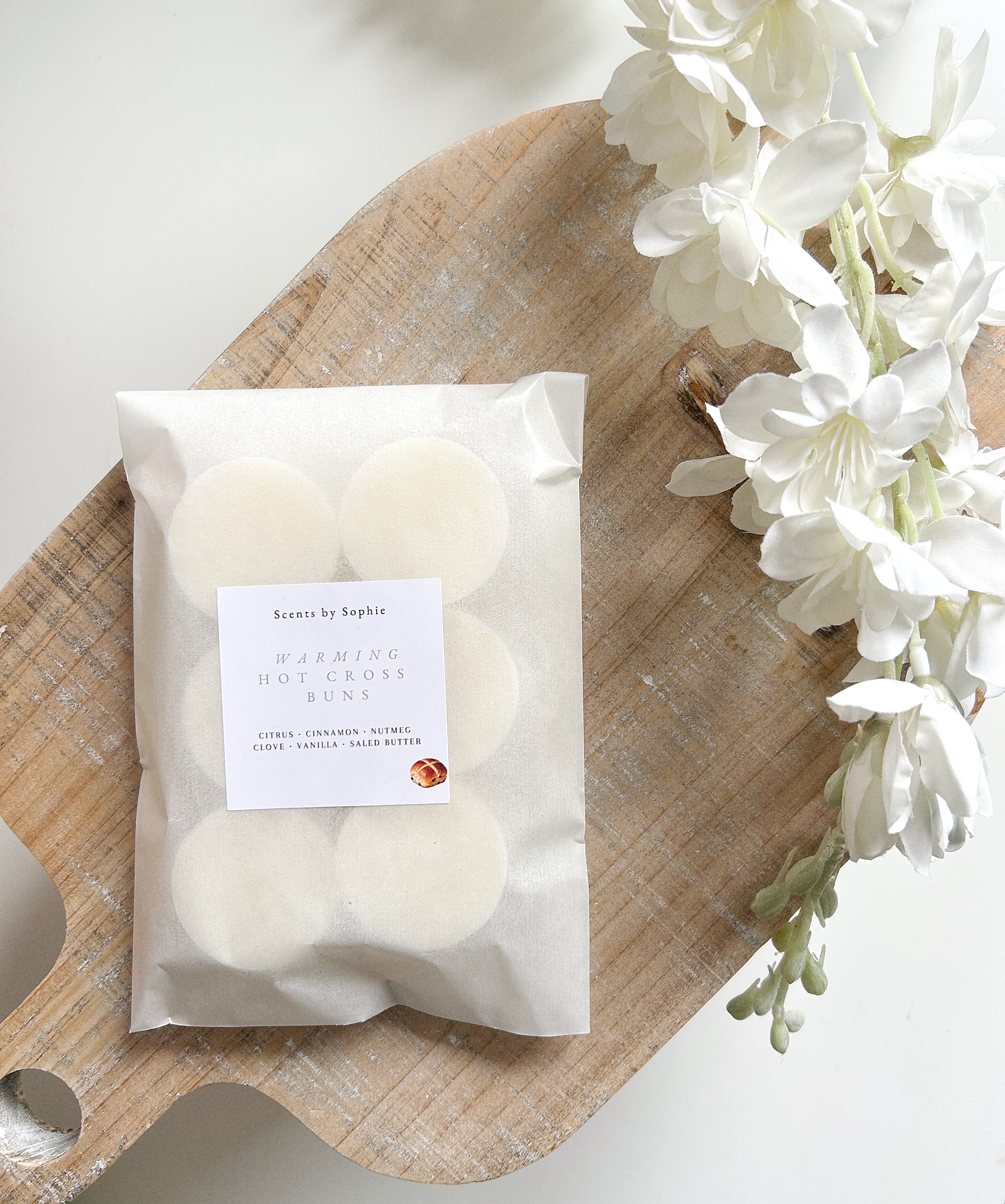 A delectable hot cross bun inspired fragrance opening with top notes of sweet citrus leading to rich dried fruits and complemented by aromatic spicy notes of cinnamon, nutmeg and clove slathered with a dollop of delicious salted butter.